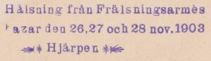 1903, Hjärpen, Frälsningsarmés Bazar 26-28 november