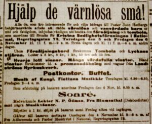 1903, Stockholm, Tombolan Rosenbad den 4-5 februari. Baronessab Daelmans tombola för skollofskolonier och ett hem för äldre medellösa personer (SvD 1903-02-04)