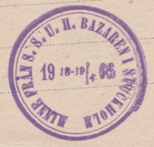 1906, Stockholm, Minne från SSUH Bazren 18-19 april