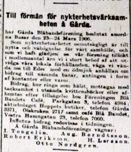 1906, Malmö?, Basar t förmån Norrbottens Arbetsstugor 2 mars (https://sok.riksarkivet.se/?postid=ArkisRef%20SE/FABD/NF_1018&type=2&s=Siv)